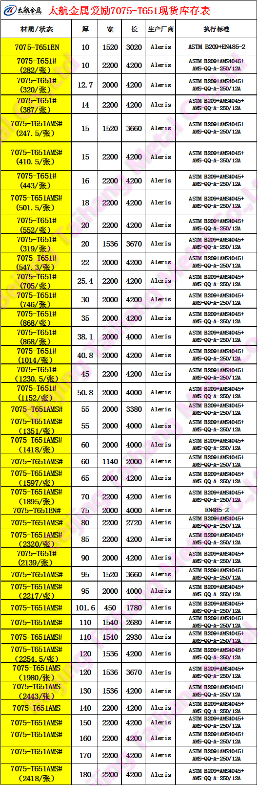 答:愛勵7075-T651高品質鋁板好,北京太航金屬有限公司是愛勵華北地區(qū)獨家代理商,我公司愛勵現(xiàn)貨庫存就是您的倉儲,滿足您的0庫存。